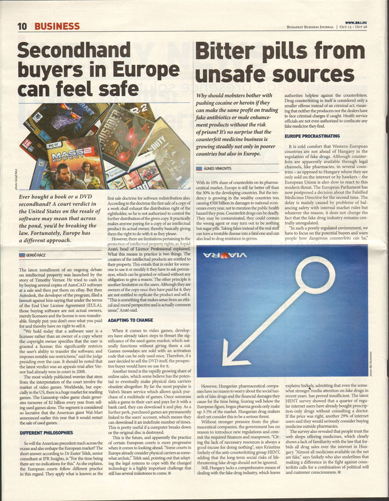 Vásárolt már használt könyvet vagy DVD-t? Egy bírósági döntés értelmében a tengerentúlon ezzel törvényt is sérthet. Szerencsére Európa másként közelíti meg a kérdést. Dr. Telek Eszter vezető tanácsadónkat a Budapest Business Journal kérdezte, a teljes cikket a képre kattintva olvashatja (angol nyelvű cikk).