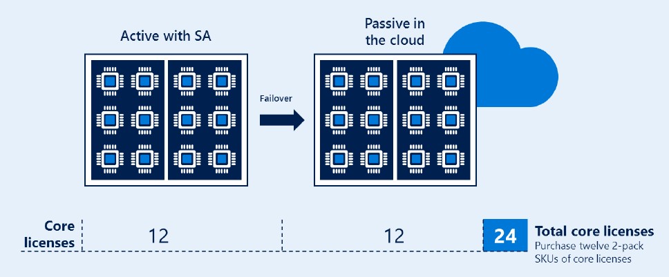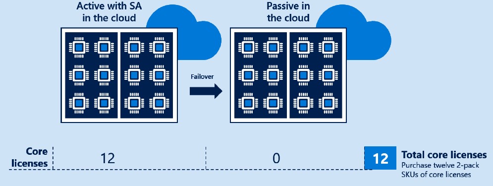 Pentru fiecare server licențiat cu SQL Server și acoperit de SA activ, clienții pot rula până la același număr de instanțe pasive de failover în OSE (Operating System Environment) separate pentru a susține evenimente de failover.