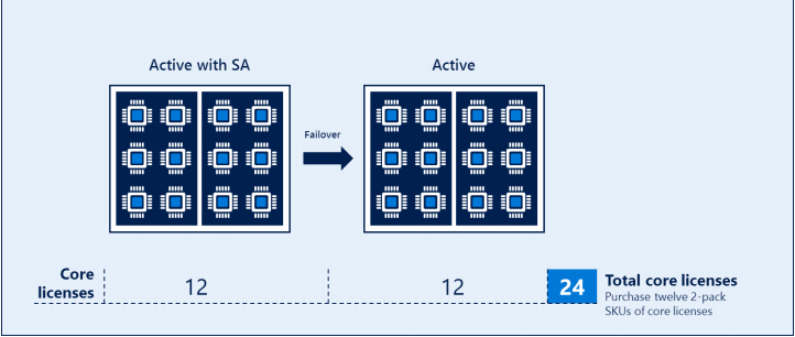 Pentru fiecare server licențiat cu SQL Server și acoperit de SA activ, clienții pot rula până la același număr de instanțe pasive de failover în OSE separate pentru a susține evenimente de failover. O instanță pasivă SQL Server este definita ca o instanță care nu servește date SQL Server clienților sau care execută sarcini de lucru SQL Server active. Instanțele pasive de failover pot rula pe un server separat. Acestea pot fi utilizate doar pentru sincronizarea cu serverul primar și pentru a menține instanța bazei de date pasivă într-o stare de așteptare – warm standby – pentru a reduce timpul de inactivitate din cauza defecțiunilor hardware sau software.